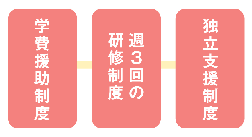 学費援助制度 / 週3回の研修制度(自由参加)